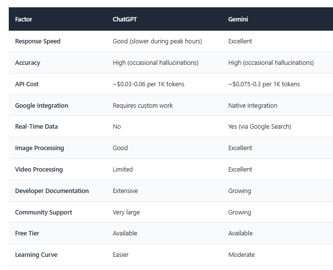 The truth is, both are excellent. The right choice depends on your specific requirements, your team’s expertise, and your app’s unique needs. Many developers are now using both—Gemini for certain tasks and ChatGPT for others. This hybrid approach gives you the best of both worlds, though it adds complexity.