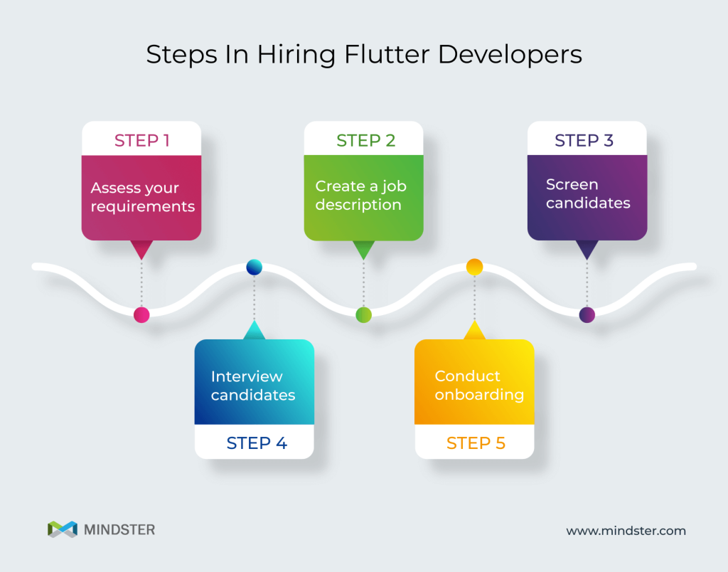 Since you are now aware of the roles, responsibilities, and skill sets you need to look for in a Flutter developer, it is much easier for you to draw out some candidates. However, follow the steps below to ensure you hire a team that fits your project and business requirements.