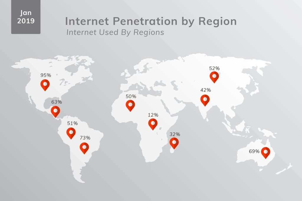 This analytics from wearesocial.com shows the growing penetration of internet across the world. As of 2025, global internet penetration has reached 67%, with mobile being the primary access point in developing regions. Since the most thriving economies like India, China, etc. are all growing, the numbers are going to shoot up soon.