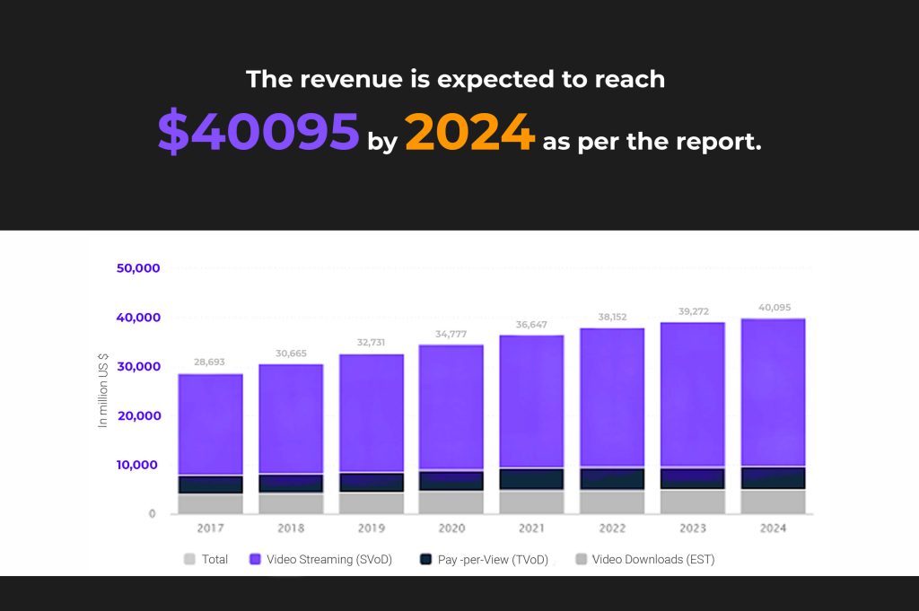 According to Statista, the revenue of the video-on-demand industry amount to 34,777 million USD in 2020.