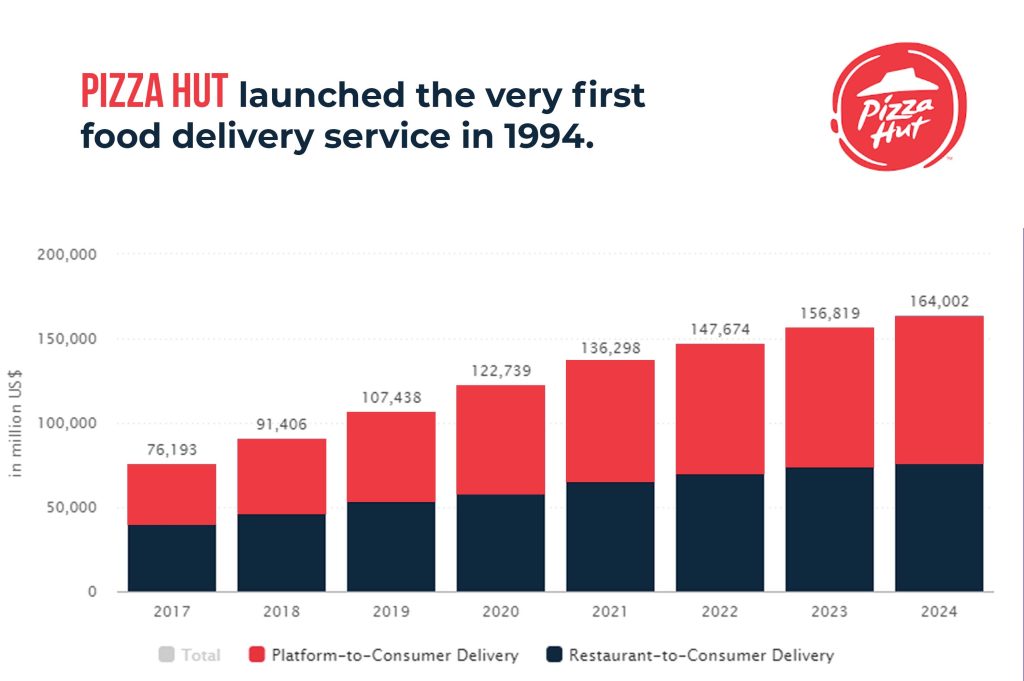 Pizza Hut launched the very first food delivery service in 1994.