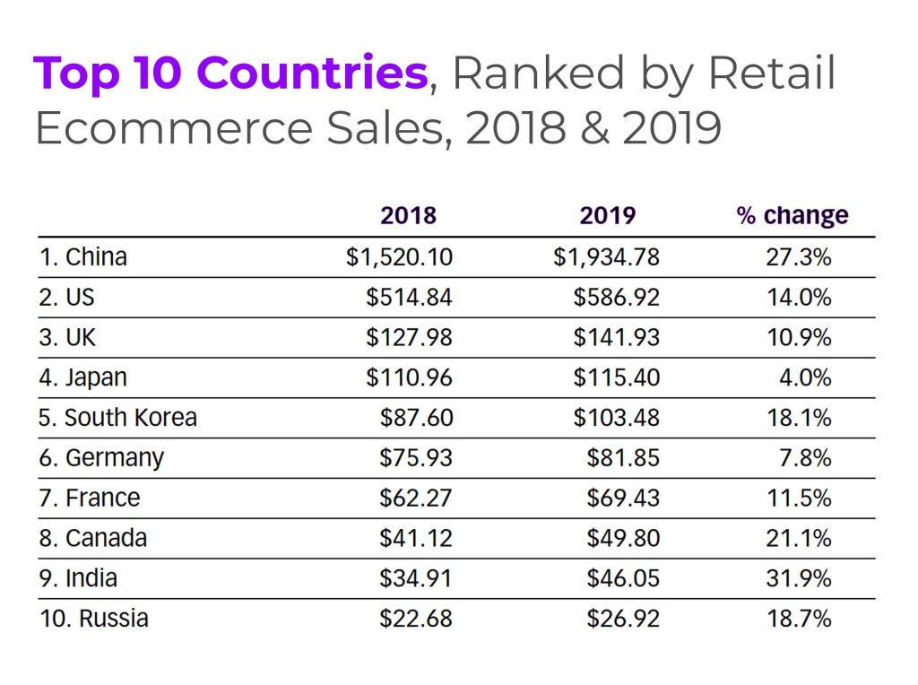 Looking again at statistics, we understand the hold of e-commerce in different countries.