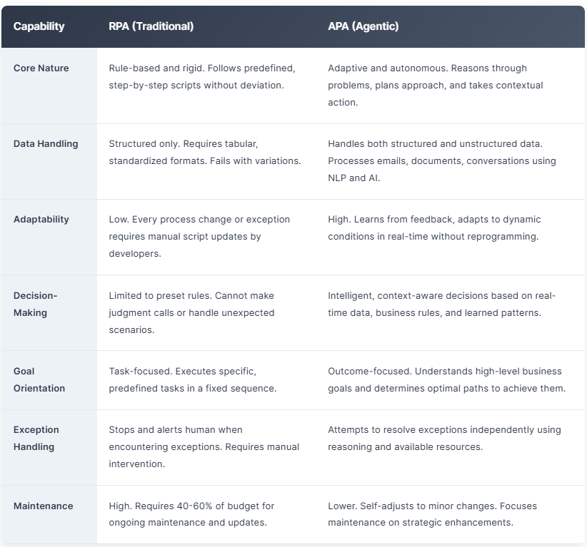 But as organizations scaled their automation initiatives, they encountered a fundamental limitation: RPA bots are brilliant executors but terrible thinkers.
