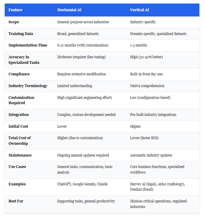 Quick Comparison: Horizontal AI vs. Vertical AI